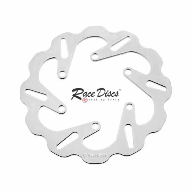 RaceDiscs OEM replacement stainless steel front brake disc.220mm diameter. Fits selected Kawasaki MX & Enduro models.