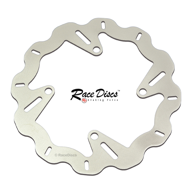 RaceDiscs OEM replacement stainless steel rear brake disc.240mm diameter. Fits selected Kawasaki MX & Enduro models.