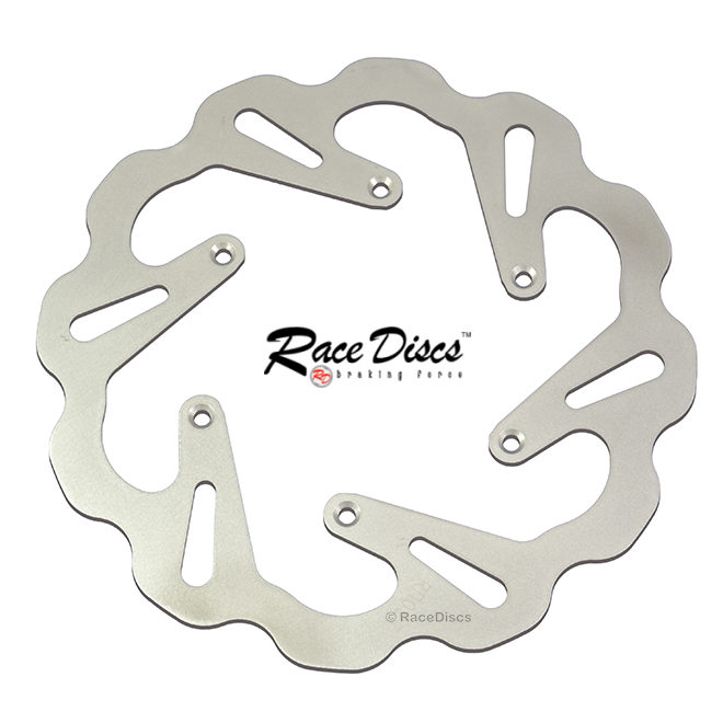 RaceDiscs OEM replacement stainless steel front brake disc. 250mm diameter. Fits selected Suzuki MX & Enduro models.